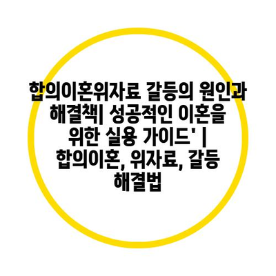 합의이혼위자료 갈등의 원인과 해결책| 성공적인 이혼을 위한 실용 가이드’ | 합의이혼, 위자료, 갈등 해결법