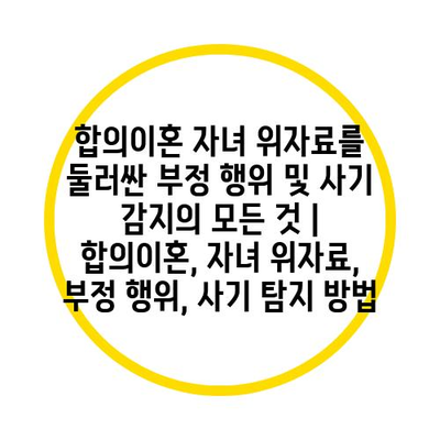 합의이혼 자녀 위자료를 둘러싼 부정 행위 및 사기 감지의 모든 것 | 합의이혼, 자녀 위자료, 부정 행위, 사기 탐지 방법에 대해 자주 묻는 질문 TOP 5
