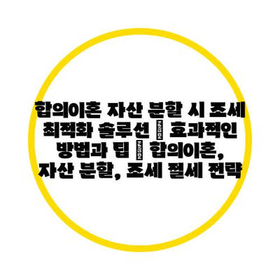 합의이혼 자산 분할 시 조세 최적화 솔루션 | 효과적인 방법과 팁 | 합의이혼, 자산 분할, 조세 절세 전략 에 대해 자주 묻는 질문 TOP 5