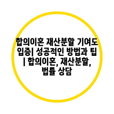 합의이혼 재산분할 기여도 입증| 성공적인 방법과 팁 | 합의이혼, 재산분할, 법률 상담
