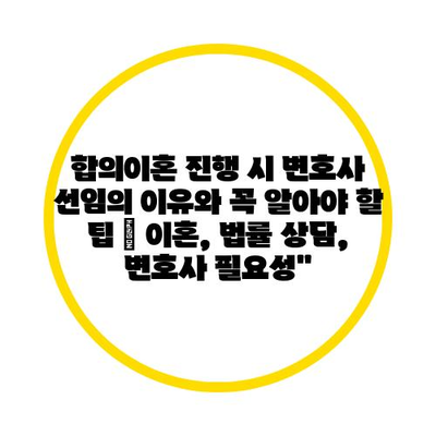 합의이혼 진행 시 변호사 선임의 이유와 꼭 알아야 할 팁 | 이혼, 법률 상담, 변호사 필요성”
