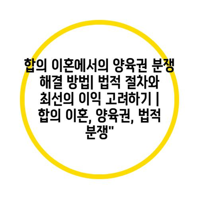 합의 이혼에서의 양육권 분쟁 해결 방법| 법적 절차와 최선의 이익 비교하기 | 합의 이혼, 양육권, 법적 분쟁