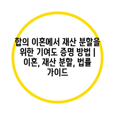합의 이혼에서 재산 분할을 위한 기여도 증명 방법은 매우 중요한 주제입니다.