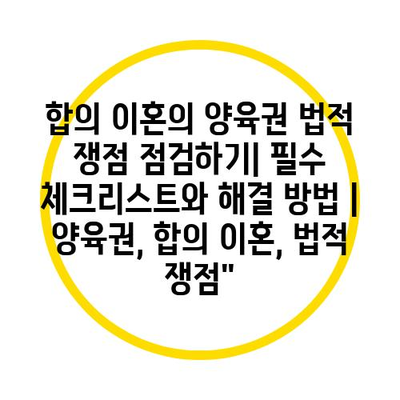 합의 이혼의 양육권 법적 쟁점 점검하기| 필수 체크리스트와 해결 방법 | 양육권, 합의 이혼, 법적 쟁점