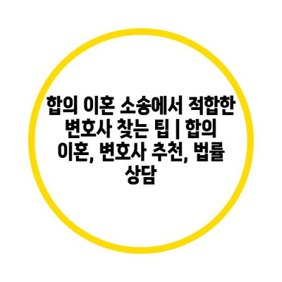 합의 이혼 소송에서 적합한 변호사 찾는 팁 | 합의 이혼, 변호사 추천, 법률 상담에 대해 자주 묻는 질문 TOP 5