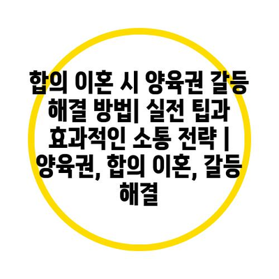 합의 이혼 시 양육권 갈등 해결 방법| 실전 팁과 효과적인 소통 전략 | 양육권, 합의 이혼, 갈등 해결 에 대해 자주 묻는 질문 TOP 5