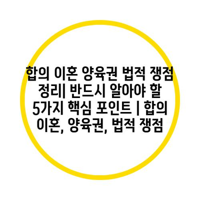 합의 이혼 양육권 법적 쟁점 정리| 반드시 알아야 할 5가지 핵심 포인트 | 합의 이혼, 양육권, 법적 쟁점 에 대해 자주 묻는 질문 TOP 5