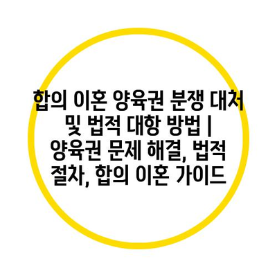 합의 이혼 후에 발생할 수 있는 양육권 분쟁은 감정적으로 힘든 방법을 동반할 수 있습니다. 따라서 법적인 절차를 미리 이해하고 필요한 준비를 하는 것이 중요합니다. 아래의 표는 양육권 문제 해결을 위한 기본적인 법적 절차와 준비사항을 정리한 것입니다.