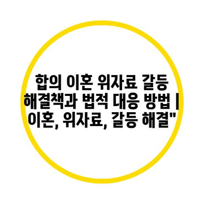 합의 이혼 위자료 갈등 해결책과 법적 대응 방법 | 이혼, 위자료, 갈등 해결”
