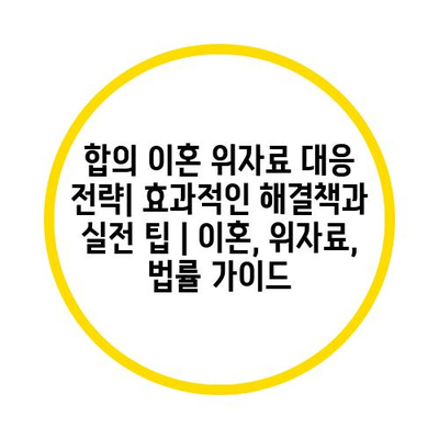 합의 이혼 위자료 대응 전략| 효과적인 해결책과 실전 팁 | 이혼, 위자료, 법률 가이드