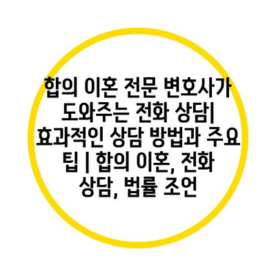 합의 이혼 전문 변호사가 도와주는 전화 상담| 효과적인 상담 방법과 주요 팁 | 합의 이혼, 전화 상담, 법률 조언