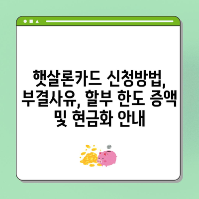 햇살론카드 신청방법, 부결사유, 할부, 한도증액 및 현금화 방법에 대해 자세히 안내합니다. 저신용자들을 위한 필수 정보입니다.