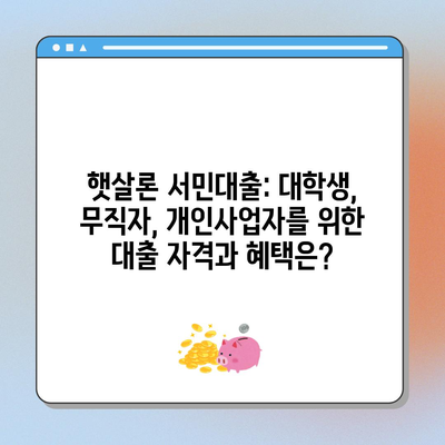 햇살론 서민대출: 대학생, 무직자, 개인사업자를 위한 대출 자격과 혜택은?