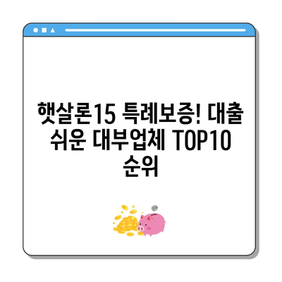 햇살론15 특례보증! 대출 쉬운 대부업체 TOP10 순위