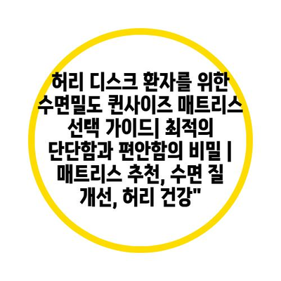 허리 디스크 환자를 위한 수면밀도 퀸사이즈 매트리스 선택 설명서| 최적의 단단함과 편안함의 비밀 | 매트리스 추천, 수면 질 개선, 허리 건강” 에 대해 자주 묻는 질문 TOP 5