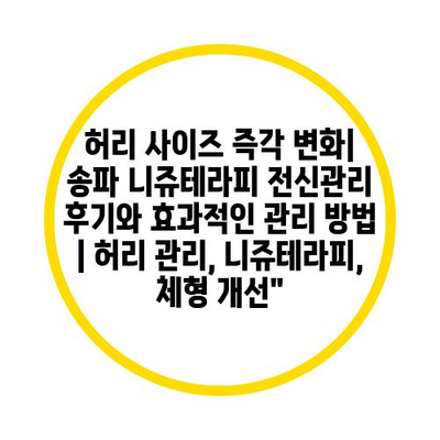 허리 사이즈 즉각 변화| 송파 니쥬테라피 전신관리 후기와 효과적인 관리 방법 | 허리 관리, 니쥬테라피, 체형 개선에 대해 자주 묻는 질문 TOP 5