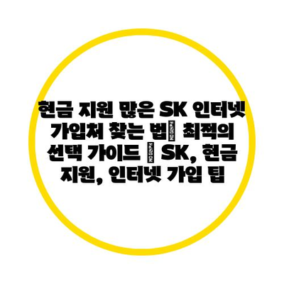 현금 지원 많은 SK 인터넷 가입처 찾는 법| 최적의 선택 가이드 | SK, 현금 지원, 인터넷 가입 팁