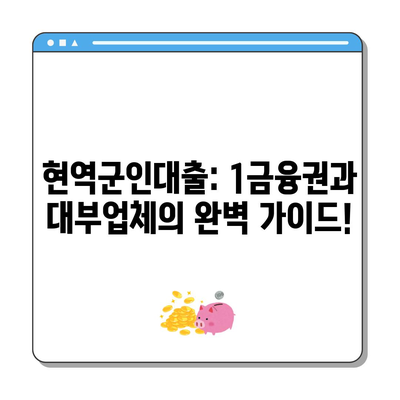 Meta Description: 현역군인을 위한 1금융권과 대부업체의 다양한 대출 옵션을 상세히 안내합니다. 필요한 자금을 해결하는 방법을 알아보세요!