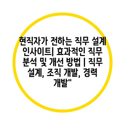 현직자가 전하는 직무 설계 인사이트| 효과적인 직무 분석 및 개선 방법 | 직무 설계, 조직 개발, 경력 개발”에 대해 자주 묻는 질문 TOP 5
