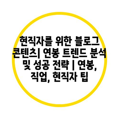 현직자를 위한 블로그 콘텐츠| 연봉 트렌드 분석 및 성공 전략 | 연봉, 직업, 현직자 팁