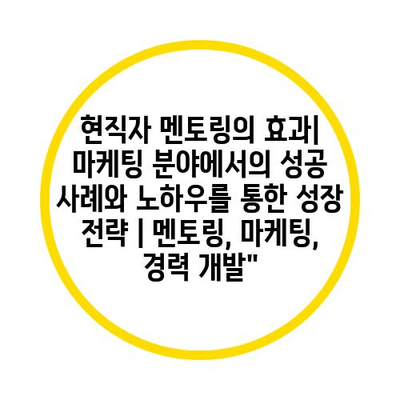 현직자 멘토링의 효과| 마케팅 분야에서의 성공 사례와 노하우를 통한 성장 전략 | 멘토링, 마케팅, 경력 개발”