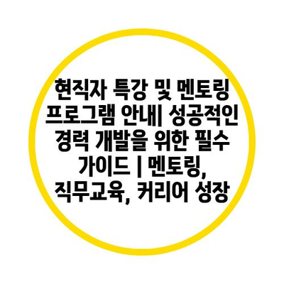 현직자 특강 및 멘토링 프로그램 안내| 성공적인 경력 개발을 위한 필수 가이드 | 멘토링, 직무교육, 커리어 성장