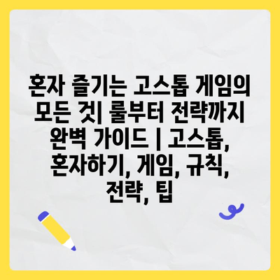 혼자 즐기는 고스톱 게임의 모든 것| 룰부터 전략까지 완벽 설명서 | 고스톱, 혼자하기, 게임, 규칙, 전략, 팁