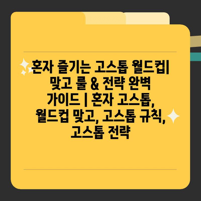 ✅ 혼자서도 고스톱 월드컵을 즐기고 싶다면? 족보부터 전략까지 완벽 분석! 지금 바로 확인하세요!