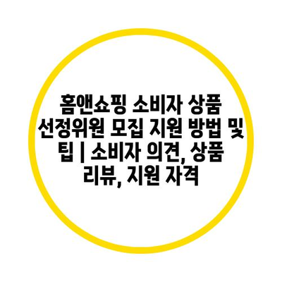 홈앤쇼핑 소비자 제품 선정위원 모집 지원 방법 및 팁 | 소비자 의견, 제품 리뷰, 지원 자격 에 대해 자주 묻는 질문 TOP 5