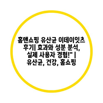 홈앤쇼핑 유산균 이데이잇츠 후기| 효과와 성분 분석, 실제 사용자 경험!” | 유산균, 건강, 홈쇼핑 에 대해 자주 묻는 질문 TOP 5