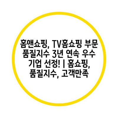 - 최근 3년 동안 홈앤쇼핑이 우수 기업으로 선정된 것은 이러한 품질지수를 높이기 위한 지속적인 노력을 나타냅니다.