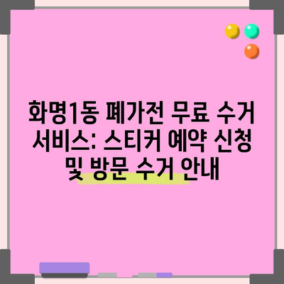 💡 화명1동 폐가전 무료 수거 신청 방법을 지금 바로 알아보세요. 💡