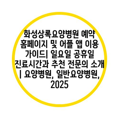 화성상록요양병원 예약 홈페이지 및 어플 앱 이용 설명서| 일요일 공휴일 진료시간과 추천 전연락 소개 | 요양병원, 일반요양병원, 2025 에 대해 자주 묻는 질문 TOP 5