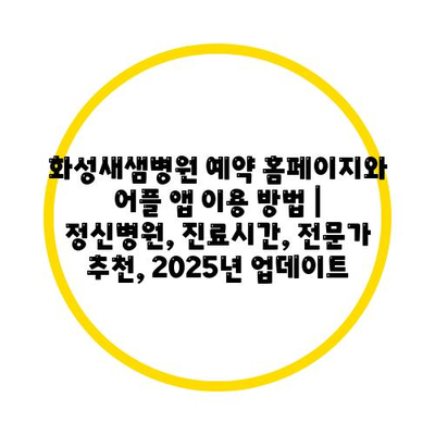 화성새샘병원 예약 홈페이지와 어플 앱 이용 방법 | 정신병원, 진료시간, 전문가 추천, 2025년 업데이트