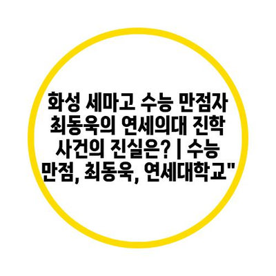 화성 세마고 수능 만점자 최동욱의 연세의대 진학 사건의 진실은?