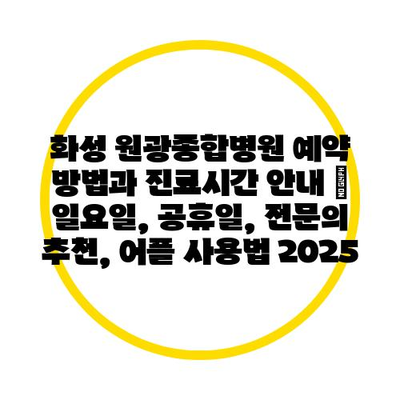 화성 원광종합병원 예약 방법과 진료시간 공지 | 일요일, 공휴일, 전연락 추천, 어플 사용법 2025에 대해 자주 묻는 질문 TOP 5