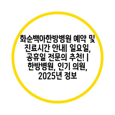 화순백아한방병원 예약 및 진료시간 공지| 일요일, 공휴일 전연락 추천! | 한방병원, 인기 의원, 2025년 정보 에 대해 자주 묻는 질문 TOP 5