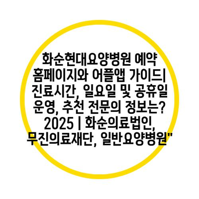 화순현대요양병원 예약 홈페이지와 어플앱 설명서| 진료시간, 일요일 및 공휴일 운영, 추천 전연락 정보는?