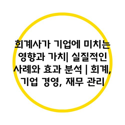 회계사가 기업에 미치는 영향과 가치| 실질적인 사례와 효과 분석 | 회계, 기업 경영, 재무 관리