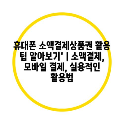 휴대폰 소액결제제품권 활용 팁 알아보기’ | 소액결제, 모바일 결제, 실용적인 활용법 에 대해 자주 묻는 질문 TOP 5
