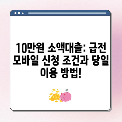 💡 10만원 소액대출의 조건과 절차를 지금 바로 알아보세요! 💡