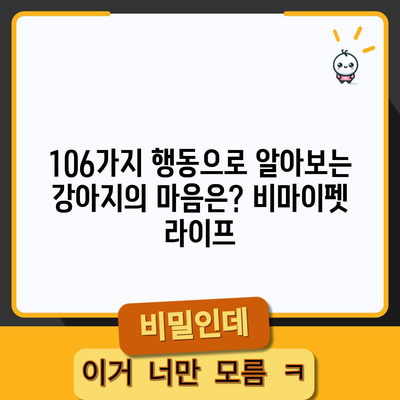 행동에서 알 수 있는 106가지 강아지 마음 비마이펫 라이프를 통해 강아지의 다양한 행동을 이해하고 소통하는 방법을 알아보세요.