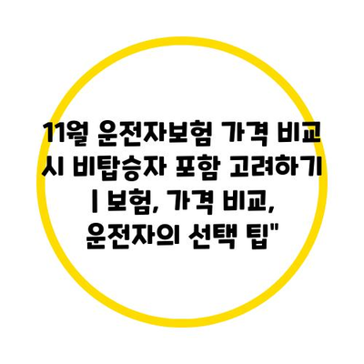11월 운전자보험 가격 비교 시 비탑승자 포함 고려하기 | 보험, 가격 비교, 운전자의 선택 팁”