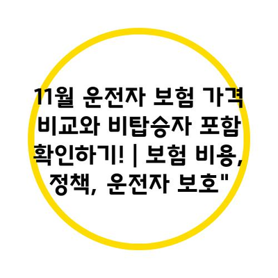 11월 운전자 보험 가격 비교와 비탑승자 포함 확인하기! | 보험 비용, 정책, 운전자 보호