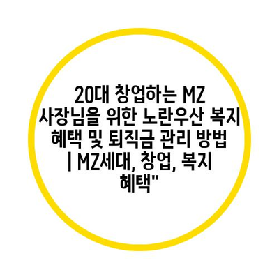 20대 창업하는 MZ 사장님을 위한 노란우산 복지 혜택 및 퇴직금 관리 방법 | MZ세대, 창업, 복지 혜택”