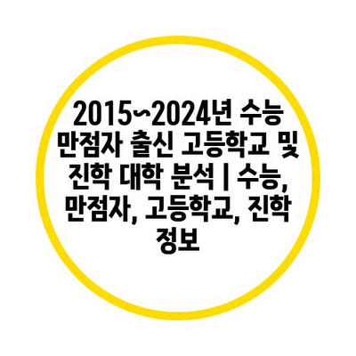 2015년부터 2024년까지의 수능 만점자 출신 고등학교 및 진학 대학에 대한 분석 결과를 소개하겠습니다. 이 날짜 동안의 수능 만점자들은 각기 다른 배경을 가지고 있으며, 특정 고등학교 출신이 두드러진 경향이 관찰되었습니다.