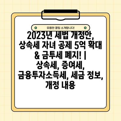 2023년 세법 개정안, 상속세 자녀 공제 5억 확대 & 금투세 폐지! | 상속세, 증여세, 금융투자소득세, 세금 정보, 개정 내용