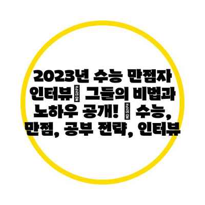 2023년 수능 만점자 인터뷰| 그들의 비법과 노하우 공개! | 수능, 만점, 공부 전략, 인터뷰