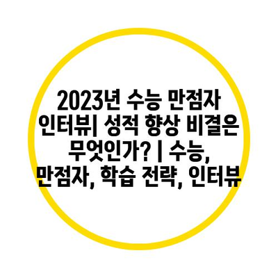 2023년 수능 만점자 인터뷰| 성적 향상 비결은 무엇인가?