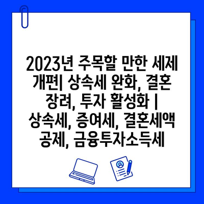 2023년 주목할 만한 세제 개편 | 상속세 완화, 결혼 장려, 투자 활성화 | 상속세, 증여세, 결혼세액 공제, 금융투자소득세